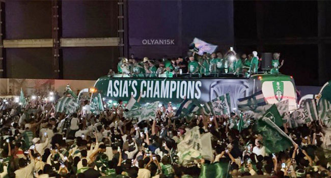 احتفلت جماهير النادي الأهلي الغفيرة مع لاعبي فريقها في كورنيش جدة؛ وذلك بعد تتويجه بدوري أبطال آسيا للنخبة للمرة الأولى في تاريخه.