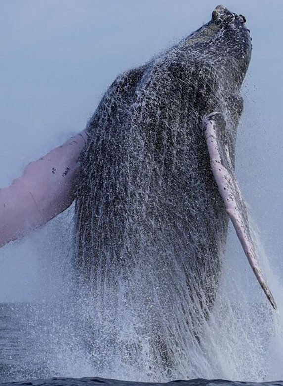 وأظهر مقطع فيديو تم تداوله على نطاق واسع على وسائل التواصل الاجتماعي الحوت الضخم، وهو يتسبب في قذف إمرأة افي البحر، غير أنه تم سحبها بسرعة إلى بر الأمان، ولم تصب بأذى.