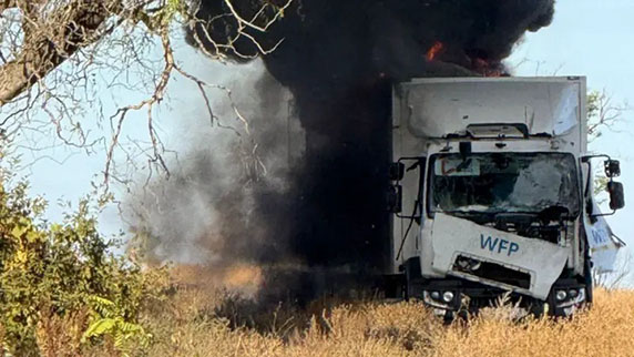 في المقابل، اتهمت كييف القوات الروسية باستهداف قافلة مساعدات تابعة للأمم المتحدة في منطقة خيرسون جنوبي البلاد، مؤكدة أن القصف تم بواسطة مسيرات ومدفعية ثقيلة قرب بلدة بيلوزيركا، ما أدى إلى احتراق إحدى الشاحنات وتضرر أخرى دون وقوع ضحايا. ونشر مسؤول الإدارة العسكرية في المنطقة أولكسندر بروكودين صوراً تُظهر شاحنة تابعة لبرنامج الأغذية العالمي وهي مشتعلة، متهماً روسيا باستهداف القافلة عمداً.