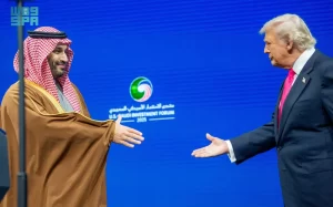 شارك صاحب السمو الملكي الأمير محمد بن سلمان بن عبدالعزيز آل سعود، ولي العهد رئيس مجلس الوزراء، وفخامة الرئيس دونالد جي ترمب رئيس الولايات المتحدة الأمريكية، في أعمال منتدى الاستثمار السعودي الأمريكي المنعقد في مركز جون كينيدي بالعاصمة الأمريكية واشنطن.