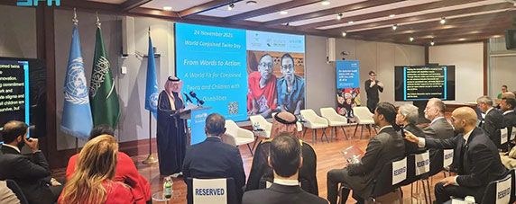 جاء ذلك خلال الحدث الذي أقيم في مدينة نيويورك بمناسبة اليوم العالمي للتوائم الملتصقة تحت شعار:” من الأقوال إلى الأفعال: عالم مستعد لدعم التوائم الملتصقة والأطفال ذوي الإعاقة”، بتنظيم مشترك من مركز الملك سلمان للإغاثة ومنظمة الأمم المتحدة للطفولة”اليونيسف” بحضور المندوب الدائم للمملكة العربية السعودية لدى الأمم المتحدة السفير الدكتور عبدالعزيز الواصل.