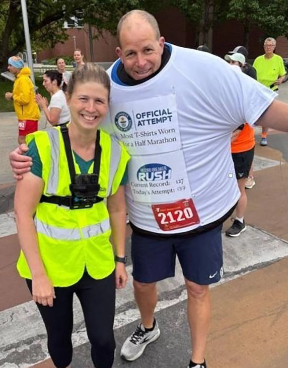 استعاد الأمريكي ديفيد راش لقبه في موسوعة «غينيس» للأرقام القياسية، بعد نجاحه في إنهاء نصف ماراثون في ولاية أيداهو مرتدياً 137 قميصاً، بلغ وزنها نحو 21.8 كيلوغراماً، متجاوزاً الرقم السابق البالغ 127 قميصاً.