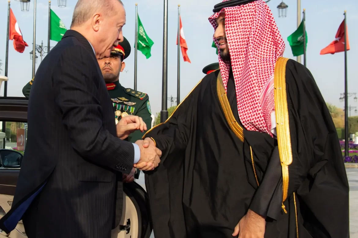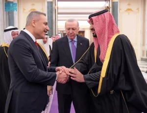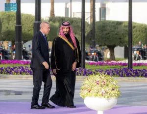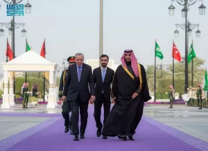 استقبل صاحب السمو الملكي الأمير محمد بن سلمان بن عبدالعزيز آل سعود ولي العهد رئيس مجلس الوزراء، بالديوان الملكي في قصر اليمامة بالرياض مساء اليوم، فخامة الرئيس رجب طيب أردوغان رئيس جمهورية تركيا.