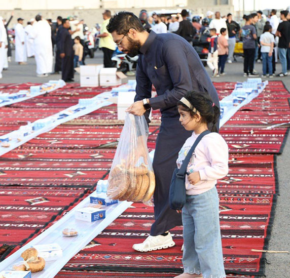كما شارك أعضاء الفريق في توزيع وجبات الإفطار على الصائمين تأكيدًا لقيم التراحم والتكافل، وتعزيزًا لثقافة العمل التطوعي.