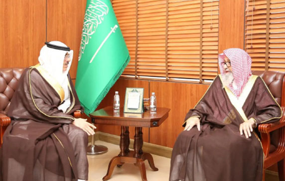 استقبل المفتي العام للمملكة رئيس هيئة كبار العلماء الرئيس العام للبحوث العلمية والإفتاء، الدكتور صالح بن فوزان الفوزان، في مكتبه بالرياض أمس (الاثنين)، محافظ الهيئة العامة للأوقاف عماد بن صالح الخراشي.