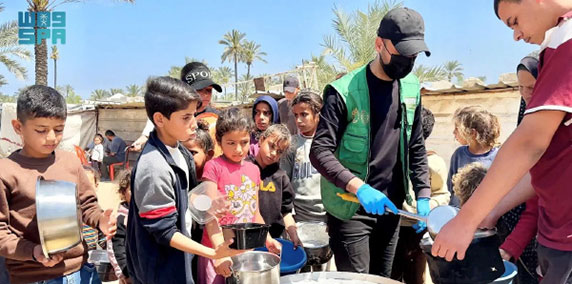 في قطاع غزة، وزّع المركز 2,339 سلة غذائية في مدينة خان يونس، استفاد منها 14,034 فردًا، ضمن الحملة الشعبية السعودية لإغاثة الشعب الفلسطيني. كما وزّع المطبخ المركزي التابع لمركز الملك سلمان للإغاثة والأعمال الإنسانية (24.500) وجبة غذائية ساخنة على الفئات الأكثر احتياجًا وسط وجنوب قطاع غزة، استفاد منها (24.500) فرد، ضمن الحملة الشعبية السعودية لإغاثة الشعب الفلسطيني الشقيق في القطاع.