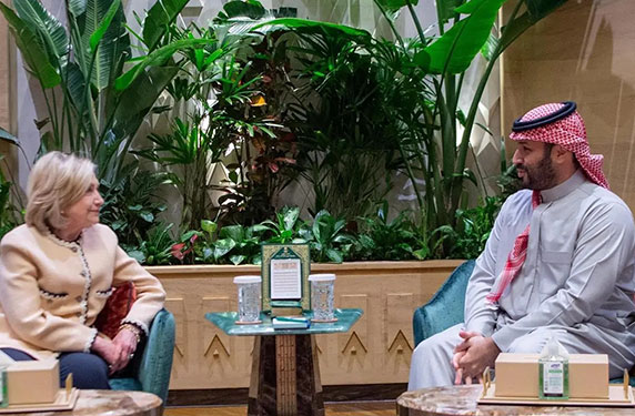 كما استقبل صاحب السمو الملكي الأمير محمد بن سلمان بن عبدالعزيز آل سعود ولي العهد رئيس مجلس الوزراء، في مكتب سموه بقصر اليمامة في الرياض أمس، وزيرة الخارجية الأمريكية الأسبق هيلاري كلينتون. وجرى خلال الاستقبال تبادل الأحاديث الودية.