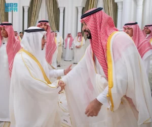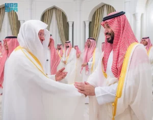 وقد تبادل سمو ولي العهد التهنئة مع الجميع بمناسبة حلول شهر رمضان المبارك، سائلًا المولى- عز وجل- أن يتقبل من الجميع الصيام والقيام وصالح الأعمال.