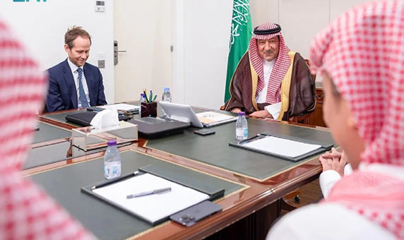 الخريجي ونائب رئيس «الأزمات الدولية» يستعرضان التعاون