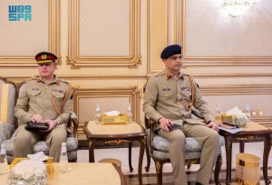 فيما حضره من الجانب الباكستاني سكرتير قائد قوات الدفاع قائد الجيش اللواء محمد جواد طارق، والملحق العسكري بسفارة جمهورية باكستان الإسلامية لدى المملكة العميد محسن جاويد.