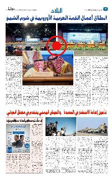 ال��ن��زاع��ات يف ليبيا و���ض��وري��ا وال��ي��م��ن دون ميلي�ضيات احل��وث��ي وع��رق��ل��ة اأي جهد حلل التي� ضتعقد خالل القمة العربية الأوروبية، تركز القمة على مناق�ضة4 ملفات رئي�ضية امل�ضتدامة وفر�س ال�ضتثمار بني اجلانبني. اأزمات الإقليم مهمة م�ضركة ول تقت�ضر على