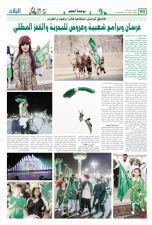 والطفل يف قاعة الأمري متعب ببلدية اجلبيل. الغاليه وقد تو�صح اجلميع الطفال وال�صباب ت��و���ص��ح��ت م��ن��ط��ق��ة ح��ائ��ل ب��ال��ل��ون الأخ�����ص��ر م�صرية اخلري نحو اآفاق البناء والنمو والرقي ب��امل��رك��ب��ات امل��ح��م��ل��ة ب��الأ���ص��ر وه���م يحملون ب��الآلف من الألعاب النارية باألوانها املبهجة